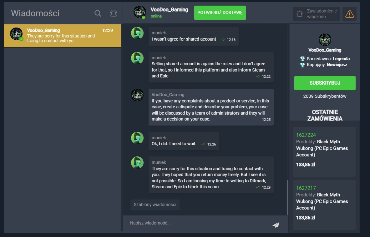 Suport nie odpowiada, sprzedawca nie czyta waszych wiadomości. Wszyscy mają cię gdzieś i się z ciebie śmieją. Tak w skrócie wyglądają tam transakcje. Nieprzyjemne doświadczenie i strata pieniędzy.